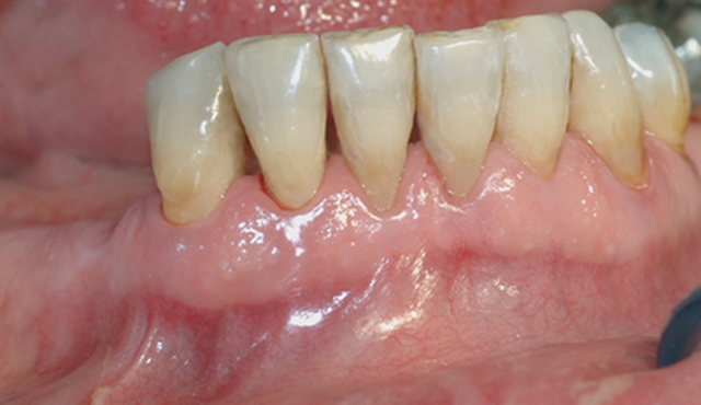 Biletet viser tilsynelatande normale tannkjøttilhøve ved tenner i underkjeven.